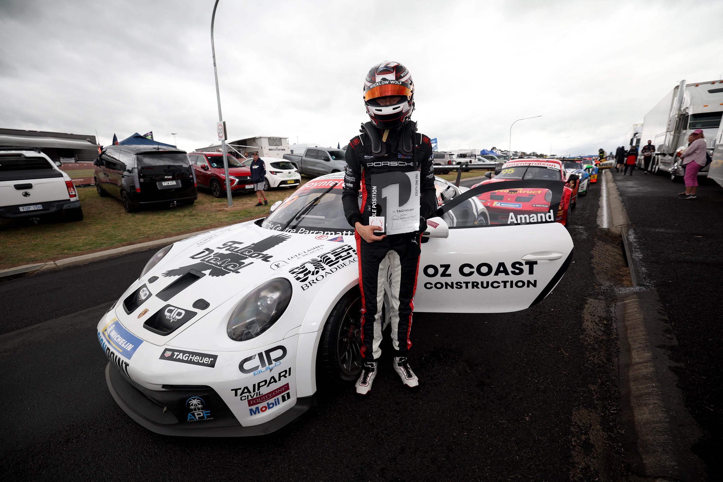 MARCUS AMAND and Matt Belford have braved the Bathurst wet to claim the Tag Heuer Pole Awards at Mount Panorama in Round 6 of the Porsche Paynter Dixon Carrera Cup Australia Championship.