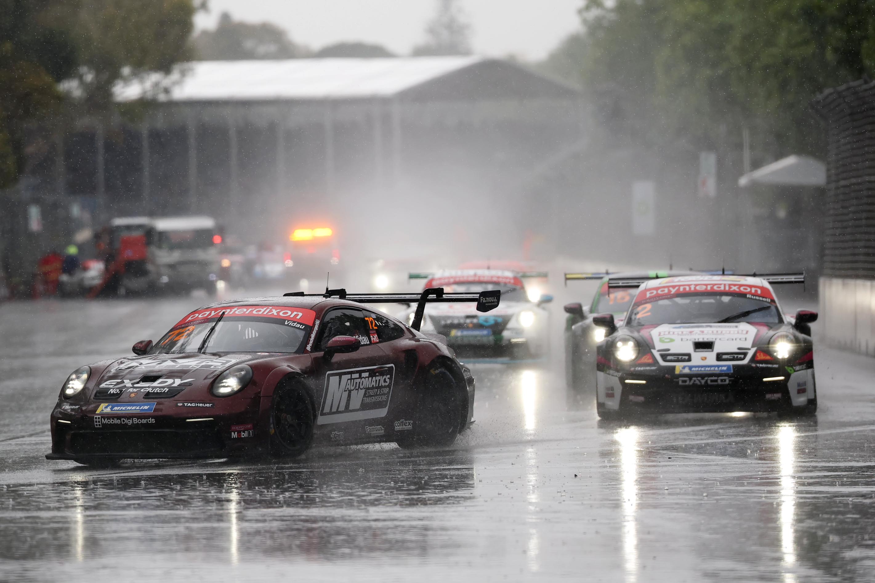 MAX VIDAU has claimed a remarkable home-town win thanks to a wet-weather tyre gamble that saw him in the right place at the right time to capitalise on a wet weather Porsche Paynter Dixon Carrera Cup Australia Enduro in Adelaide.