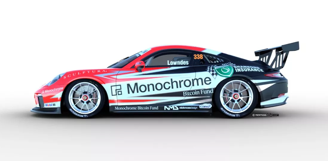 Monochrome Bitcoin Fund will proudly feature as the major partner of Craig Lowndesโ Porsche 911 GT3 Cup car for the penultimate rounds of Porsche Paynter Dixon Carrera Cup Australia at Bathurst which take place from the 01-05 December.